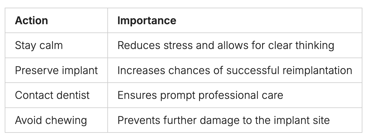 See your dentist right away if your implant falls out. Quick action helps avoid problems and boosts treatment success.