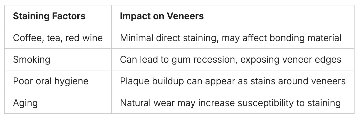 By understanding these factors and maintaining a consistent oral hygiene routine , you can help keep your veneers looking as fresh and natural as the day they were placed. Regular dental check-ups also allow your dentist to monitor and address any potential staining issues before they become a significant concern.